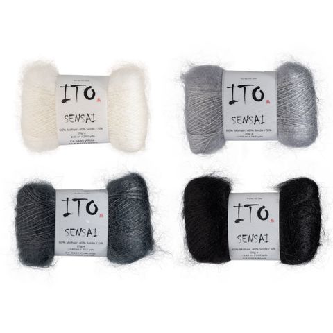 ITO Sensai vereint die zarte Weichheit von 60 % Mohair mit dem edlen Glanz von 40 % Seide zu einem luxuriösen, federleichten Garn. Mit einer Lauflänge von 240 m auf 20 g eignet es sich ideal für filigrane Lace-Arbeiten, luftige Tücher, elegante Accessoires oder als Beilauffaden, um anderen Garnen einen Hauch von Glanz und Leichtigkeit zu verleihen.