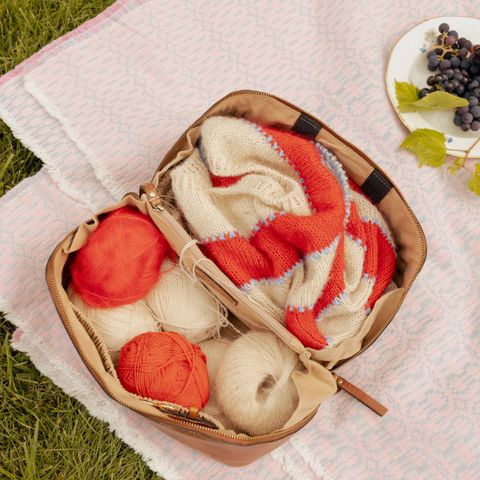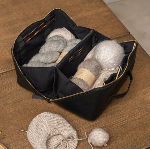 Project 10 bietet Raum für Wolle, Nadeln, Notizbuch und mehr – eine Tasche für alle, die gern unterwegs kreativ sind.